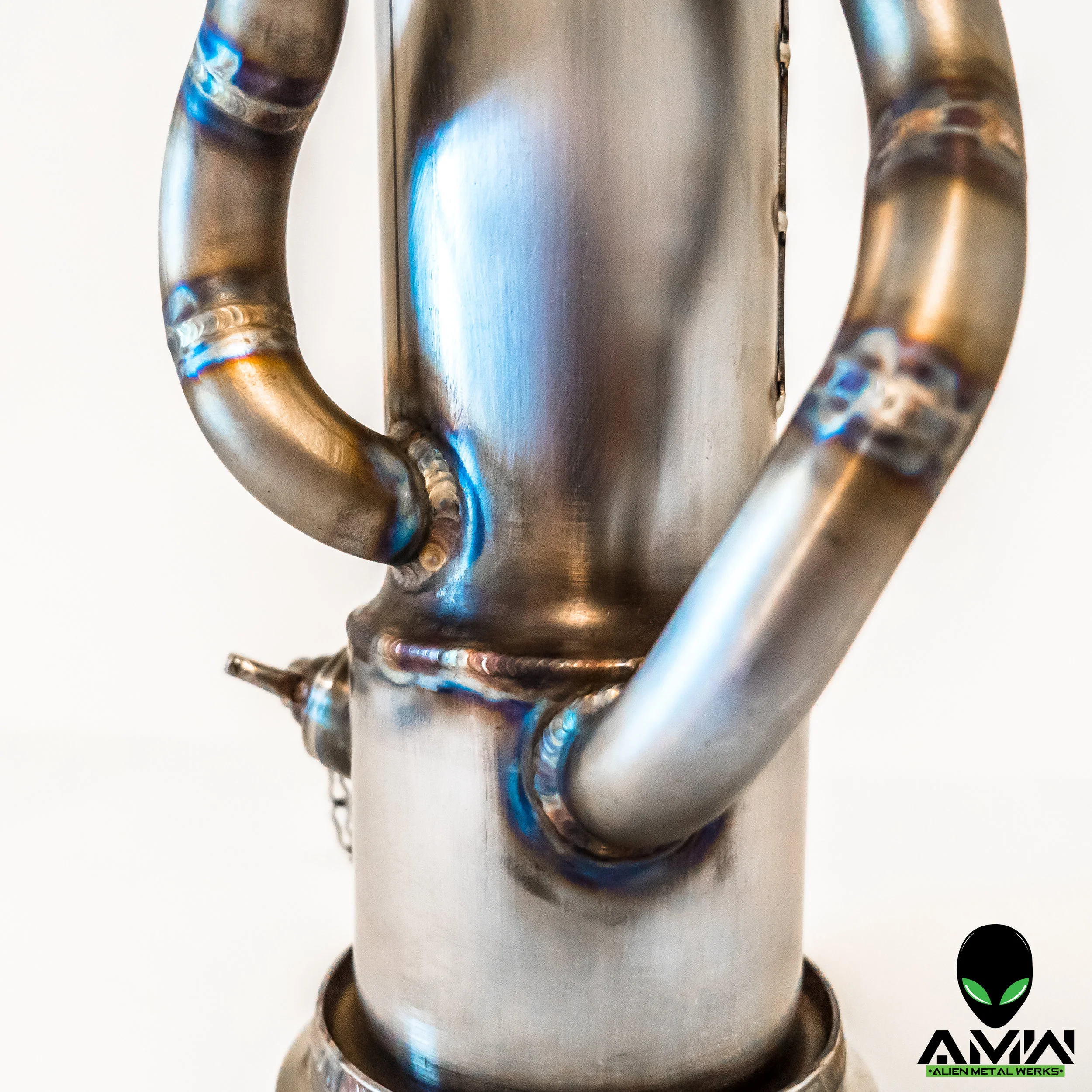 Joining of top and bottom filter chambers and fabrication of the transition tube between them. The design of the tube prevents water in the top chamber from flowing into the bottom.